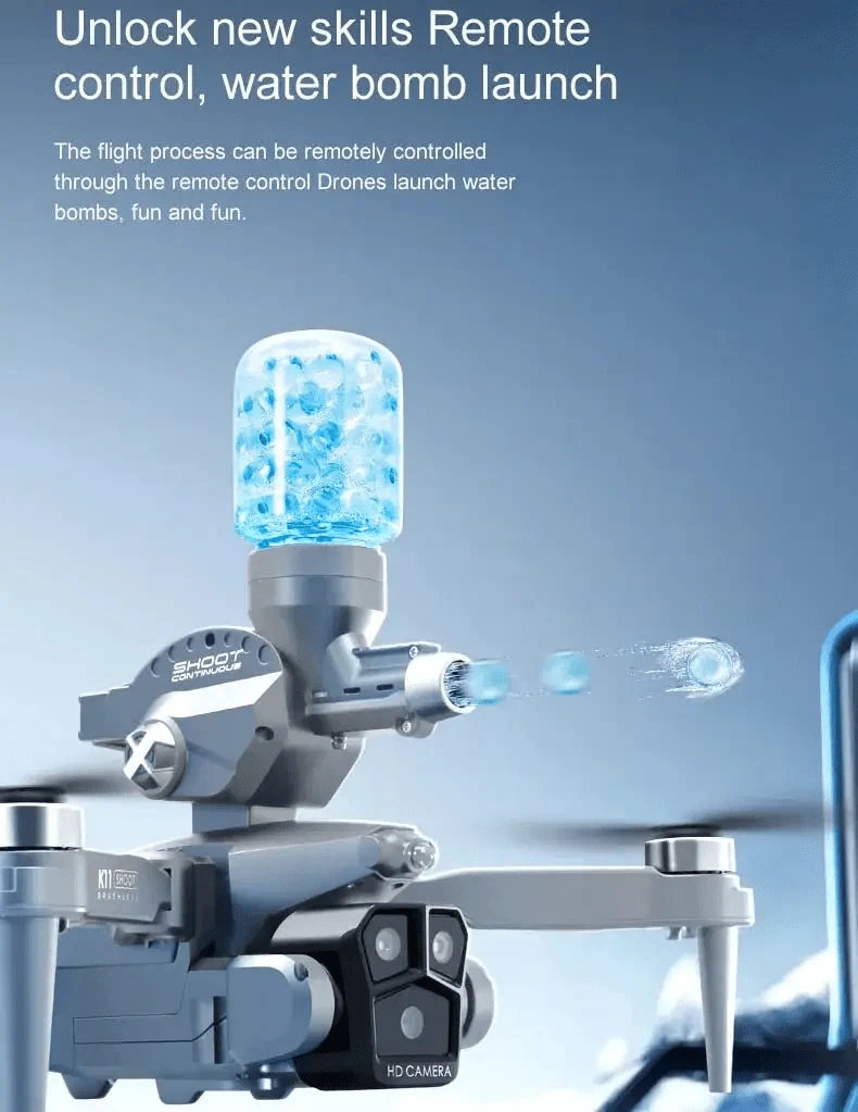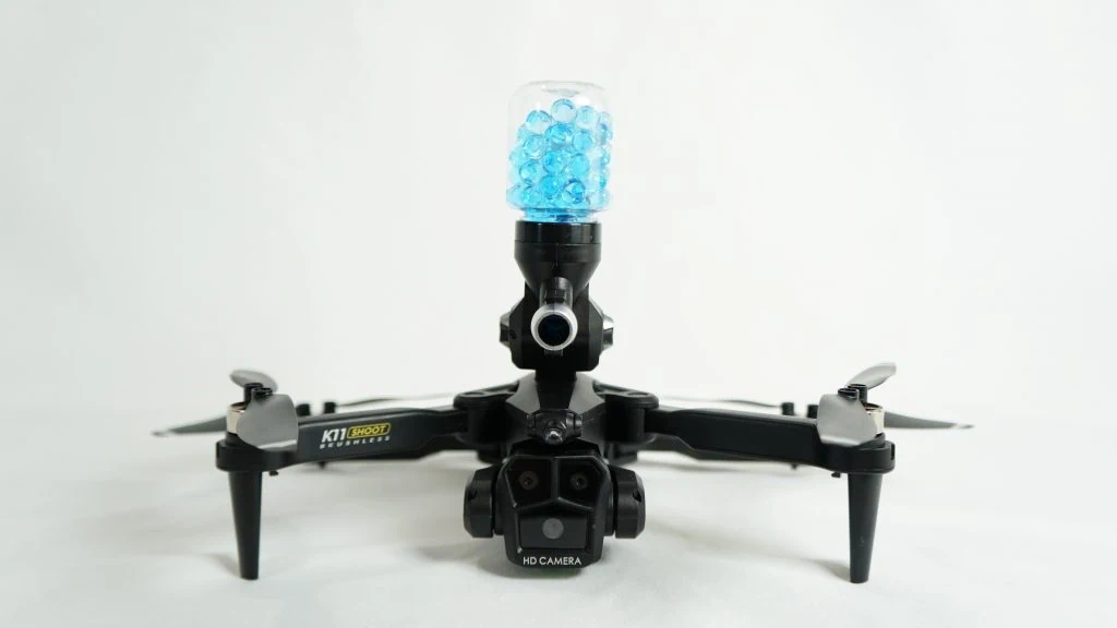 רחפן קרב יורה כדורי מים.